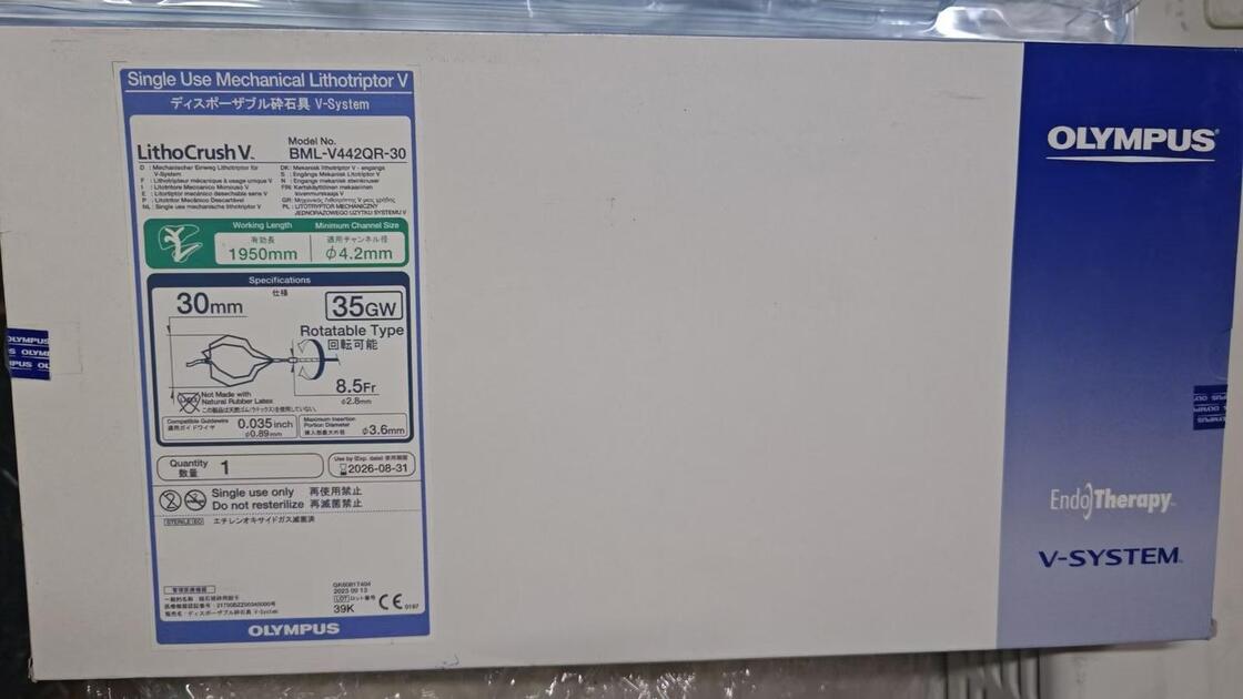 Ο Μηχανικός Λιθοτρίπτης Μίας Χρήσης Olympus BML‑V442QR‑30 V‑System είναι μια ιατρική συσκευή που χρησιμοποιείται σε ενδοσκοπικές επεμβάσεις για τη μηχανική σύνθλιψη λίθων (υπολογισμών), ειδικά στη χοληφόρο οδό, κατά τη διάρκεια ελάχιστα επεμβατικών χειρουργικών επεμβάσεων. Είναι σχεδιασμένο για μία χρήση και στη συνέχεια απορρίπτεται, αντί να επαναχρησιμοποιηθεί.